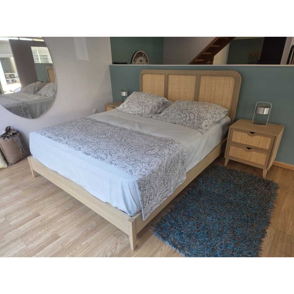 Το κρεβάτι Toscany από μασίφ δρυ με ψάθα στο κεφαλάρι, αποτελεί μια δημοφιλή επιλογή που συνδυάζει τη φυσική αισθητική του ξύλου με το ρετρό στυλ της ψάθας, δημιουργεί μια χαλαρή ατμόσφαιρα στο υπνοδωμάτιο.