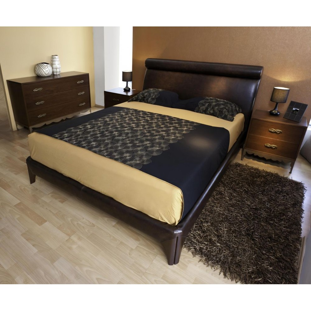 Η απαλή υφή του τεχνόδερματος και η κομψή αντίκα απόχρωση δημιουργούν έναν χώρο που σας καλωσορίζει κάθε βράδυ με άνεση και στυλ.